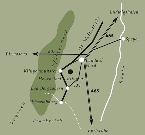 Mitten in der Südpfalz, inmitten von Weinbergen.
